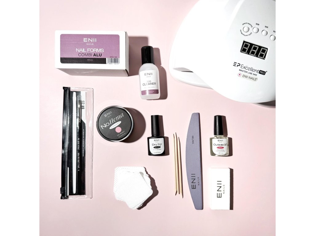 ENII Builder Gel NO HEMA – HOME & PROFI sada s lampou je kompletní profesionální balíček, který obsahuje vše potřebné pro šetrnou modeláž, zpevnění a přirozeně krásné nehty.