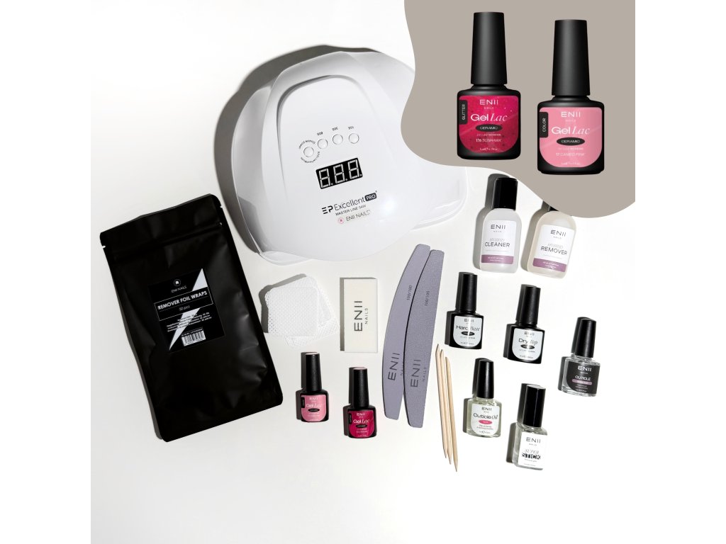 ENII Gel Lak Sada AMAZING s lampou 54W – Růžová Glitter je startovací sada pro vytvoření perfektních gelových nehtů i v pohodlí domova.