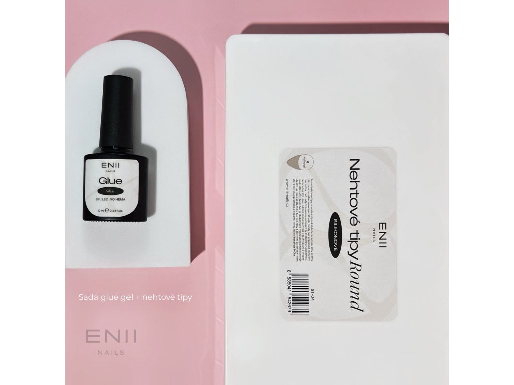 ENII Glue Gel & Silicone Nail Tips Set - Round profesionální sada - dárkové balení