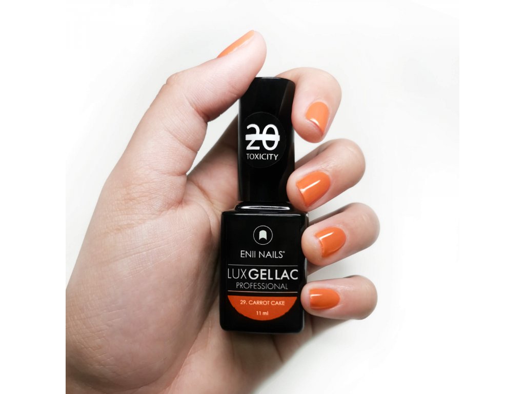 Profesionální oranžový gel lak v krémové viskozitě, s vysokým leskem a vysokou 21+ durabilitou v 20(FREE) netoxicitě. Naše nová řada laků je zaměřena na maximální kvalitu, která není na úkor zdraví. Právě proto vznikla Lux Gel Lac řada, která přináší nekompromisní Evropskou kvalitu a gelové nehty bez nejhorších toxických látek(-20 Toxicity).