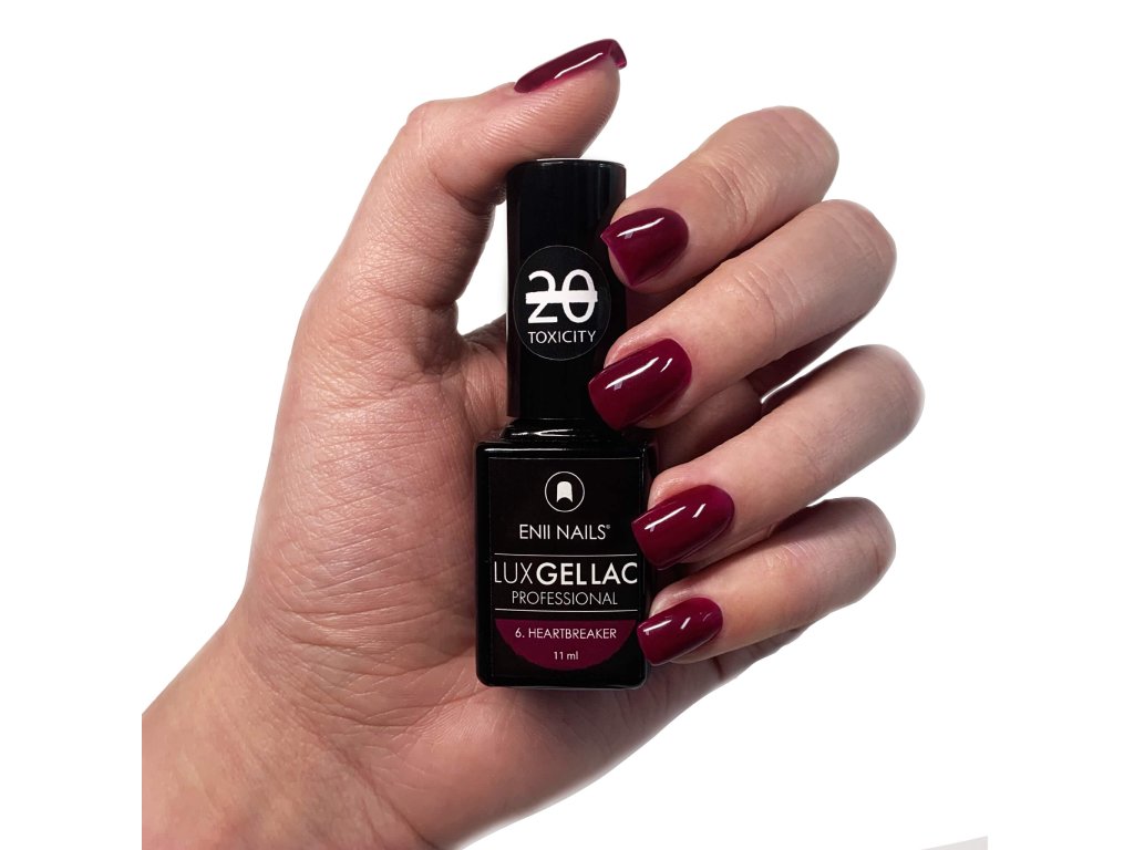 Profesionální tmavě červený gel lak v krémové viskozitě, s vysokým leskem a vysokou 21+ durabilitou v 20(FREE) netoxicitě. Naše nová řada laků je zaměřena na maximální kvalitu, která není na úkor zdraví. Právě proto vznikla Lux Gel Lac řada, která přináší nekompromisní Evropskou kvalitu a gelové nehty bez nejhorších toxických látek(-20 Toxicity).