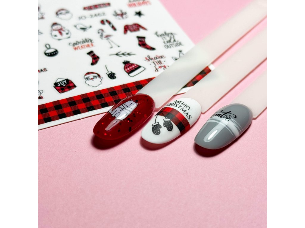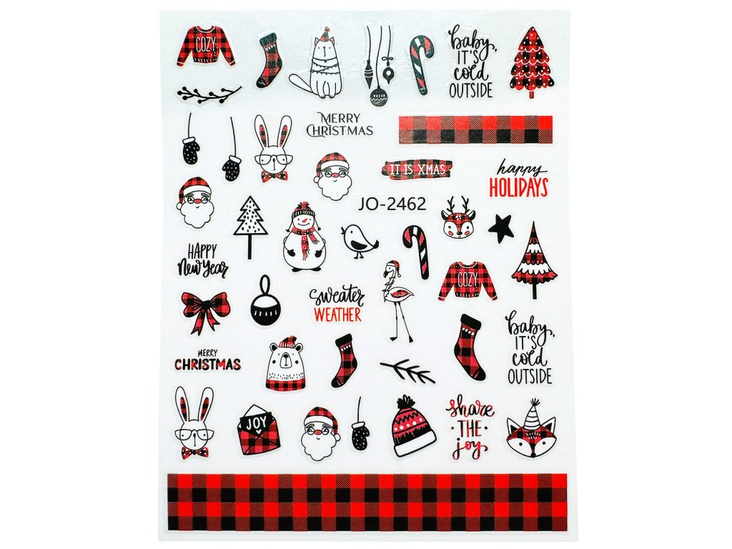 Ponořte se do radostné vánoční atmosféry s "Veselou Kolekcí". Tyto veselé nálepky na nehty jsou skvělým způsobem, jak přidat trochu svátečního ducha k vaší zimní manikúře. Sada obsahuje bohatý výběr vánočních a novoročních motivů, včetně klasických obrázků Santy, roztomilých sněhuláků, vánočních stromků a trendy prvků jako jsou vánoční svetry a punčochy. Červeno-černý károvaný vzor dodává kolekci moderní nádech, zatímco tradiční vánoční pruhy a nápisy jako "Merry Christmas" a "Happy New Year" zachovávají klasický sváteční tón.